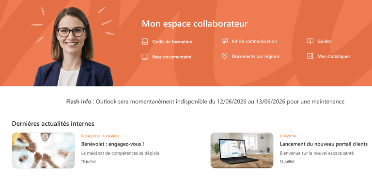Un site de communication SharePoint bien structuré règle ça : une homepage, un fil d’actualités, des accès directs aux ressources et un seul endroit à retenir pour les collaborateurs.